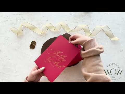 Make a statement with these acrylic wedding invitations, featuring luxurious gold foil details, a bold red pocket folder, and customizable options for a modern and elegant design.