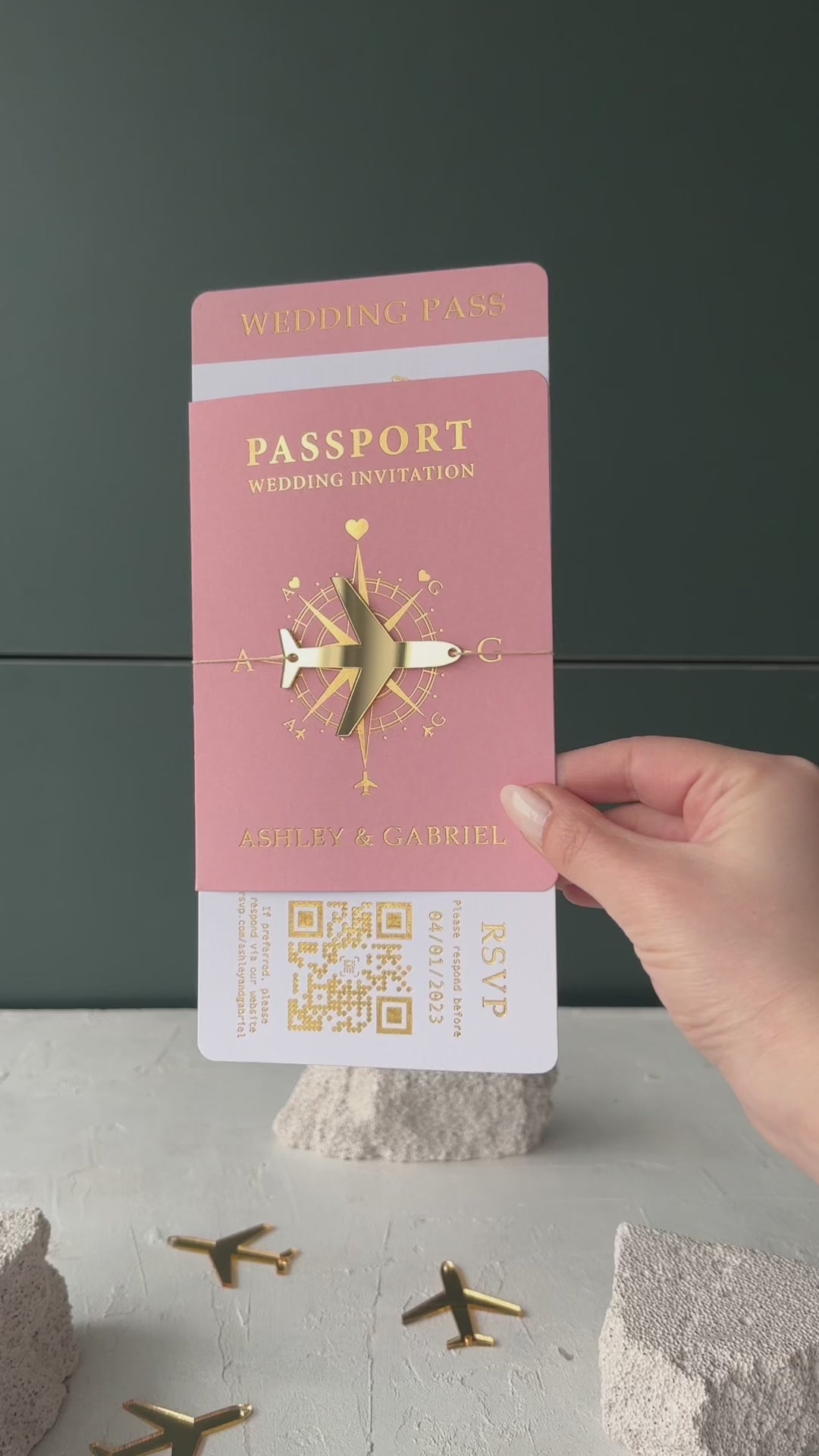 Blush Pink Passport Wedding Invitation with Gold Foil