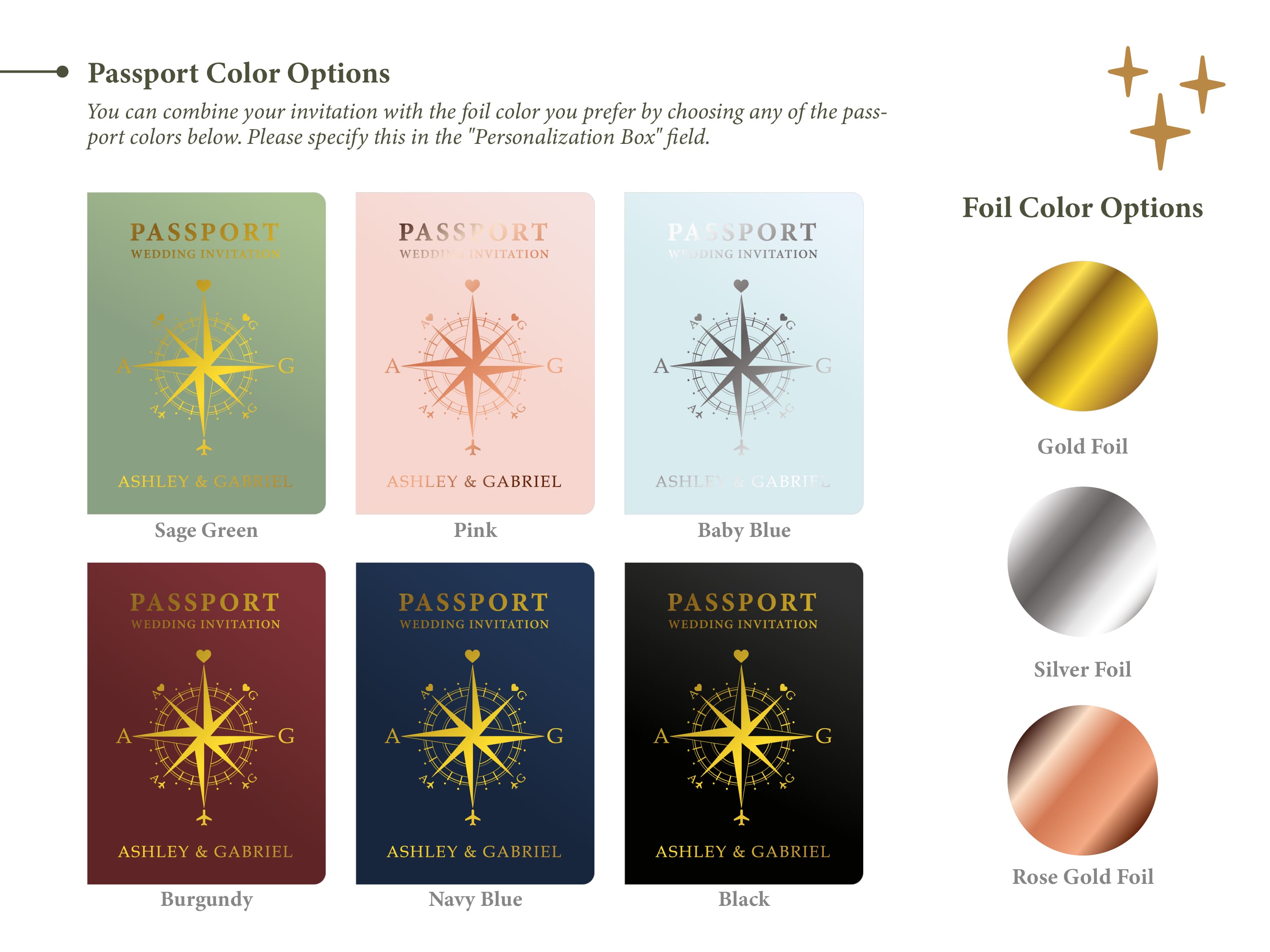 Once you place your order, we will email you requesting your wedding details. Once your information is provided to us, we will email you a digital design proof for review and approval before printing. Two rounds of changes are included with your order.