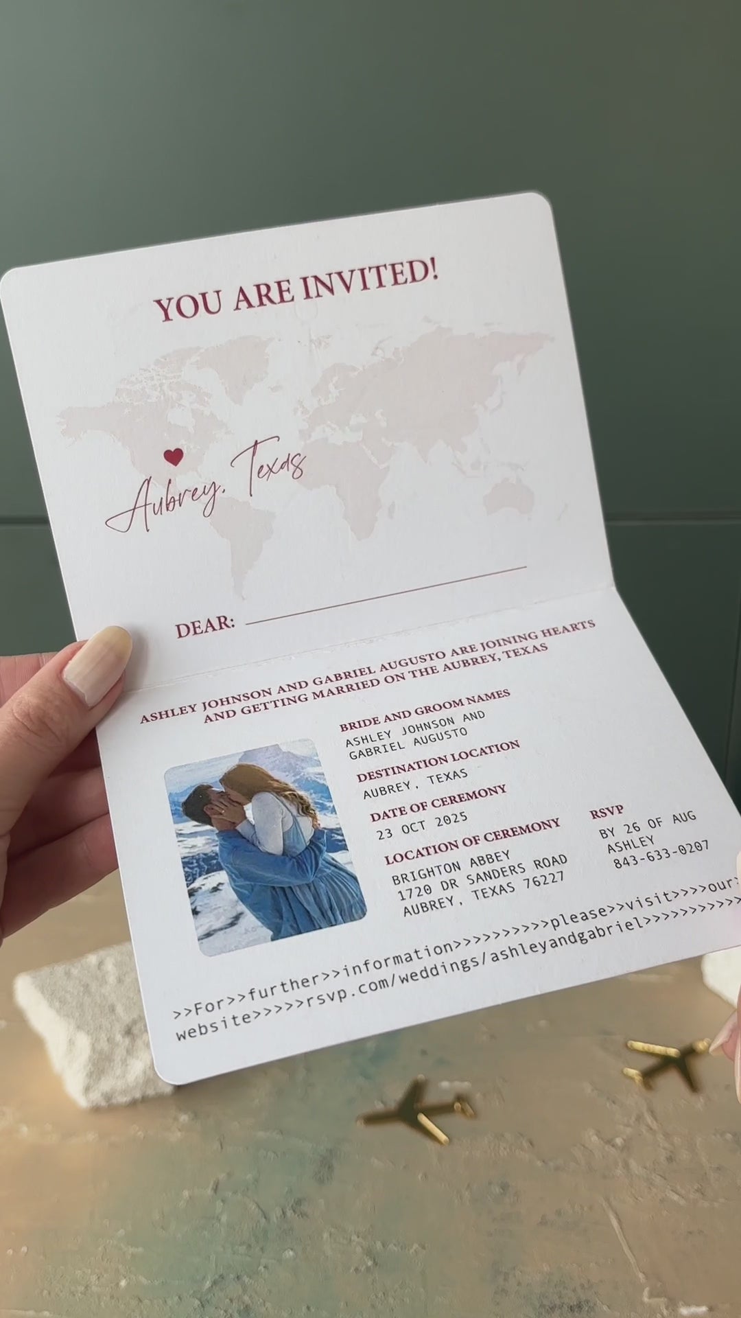 Announce your global adventure with these unique Passport Wedding Invitations. Perfect for destination weddings and travel-loving couples, these invitations mimic a real passport, complete with personalized details and a stylish design.