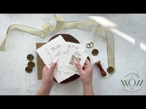 Capture timeless elegance with our handmade deckle edge wedding invitations featuring luxurious gold foil letters. Perfect for modern couples seeking sophistication, this invitation offers optional ribbons and wax seals for added charm.
