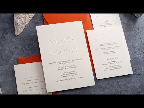 Embossed Wedding Invitation with Burnt Orange Envelope