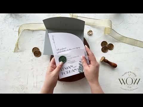 Celebrate your special day with these greenery-inspired wedding invitations, featuring a minimalist design, vellum band, and elegant green wax seal. Perfect for nature-inspired, modern, or formal weddings, this set exudes sophistication with its clean typography and custom envelope.
