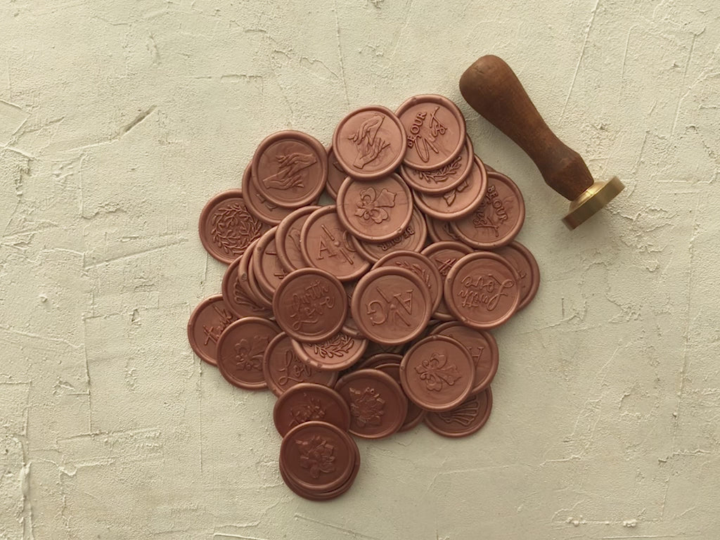 Looking for a unique way to add a touch of elegance to your wedding invitations? Look no further than our rose gold wax and seal sets! Each set includes a handmade wax seal that can be customized with a pre-made monogram design or your own custom design.
