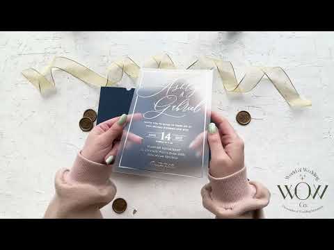 Announce your wedding with these luxury matte acrylic invitations, featuring silver foil details, a navy blue envelope. Perfect for modern, elegant, and formal weddings, this set exudes sophistication and timeless charm.